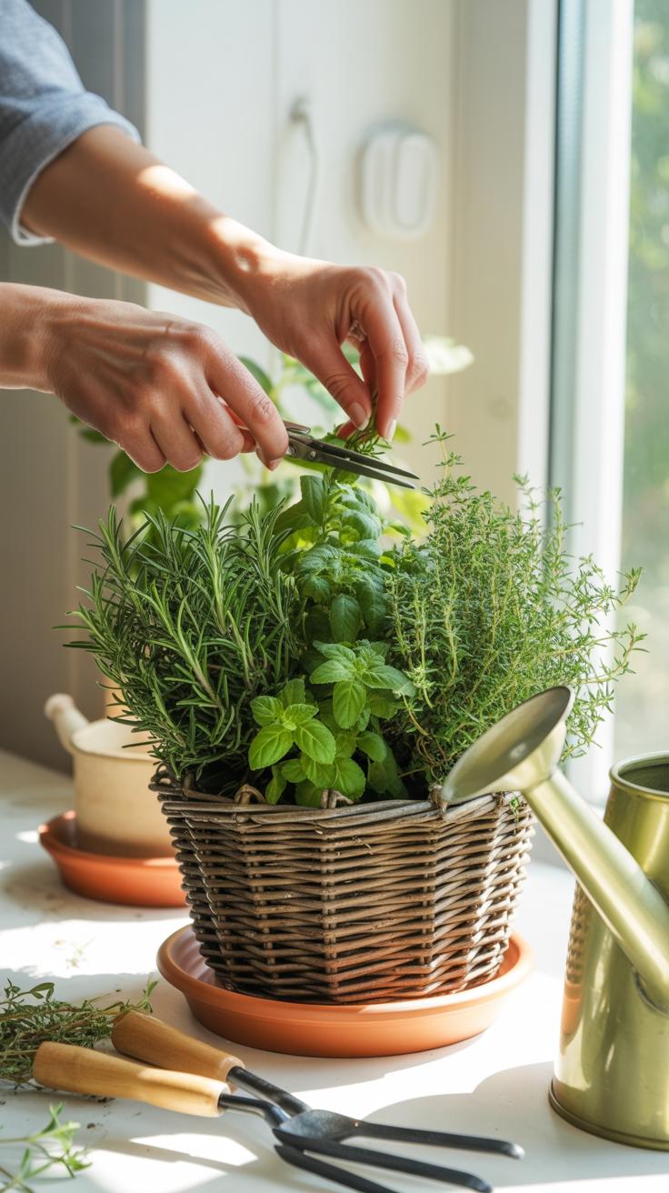 Cutting your herbs properly matters more than you might expect. Snipping leaves or stems just above a set of leaves encourages the plant to branch out and fill in rather than just growing taller. Avoid cutting too close to the base or stripping too many leaves at once—that stresses plants and slows new growth. For example, with basil, I like to pinch or cut the stem right above the leaf nodes to avoid harming the main stem. A quick pair of scissors or sharp garden shears works well here.