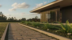 When it comes to pathways and driveways in Mid Century Modern exteriors, simplicity is key—but that doesn’t mean it has to be boring. Clean lines and straightforward layouts work best. Think about materials like poured concrete, gravel, or large concrete pavers separated by narrow strips of grass or ground cover. These options keep things visually light yet still grounded.
